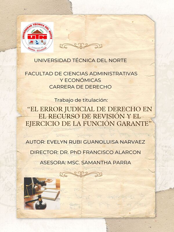 https://repositorio.utn.edu.ec/handle/123456789/17650| Title: | El error judicial de derecho en el recurso de revisión y el ejercicio de la función garante |