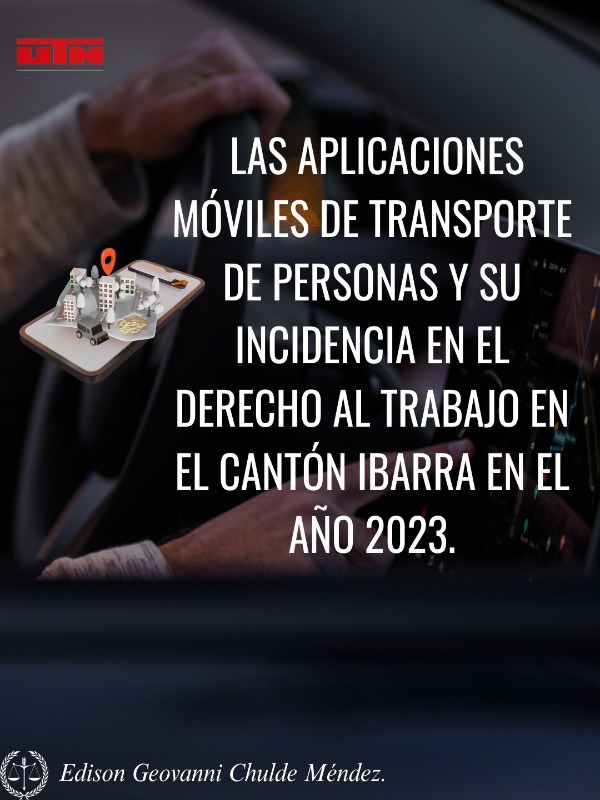 https://repositorio.utn.edu.ec/handle/123456789/17794| Title: | Las aplicaciones móviles de transporte de personas y su incidencia en el derecho al trabajo en el cantón Ibarra en el año 2023 |