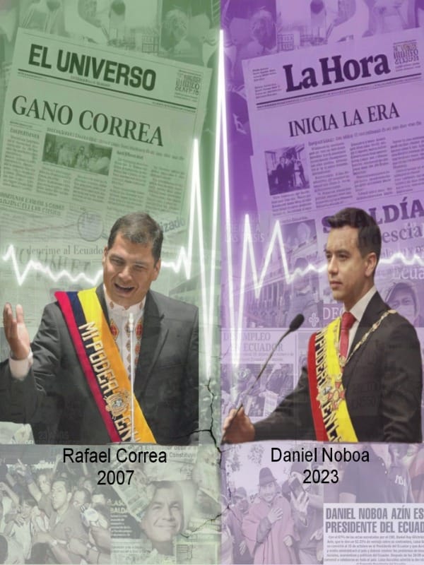 | Abstract: | Este estudio se fundamenta en la relevancia del discurso político como herramienta de legitimación y construcción de autoridad en contextos de crisis institucional, analizando las tomas de posesión presidenciales de Rafael Correa (2007) y Daniel Noboa (2023) en Ecuador. Su objetivo general es comparar las estrategias discursivas, retóricas y no verbales empleadas por ambos líderes para conectar con la audiencia y proyectar su imagen presidencial. Metodológicamente, se adoptó un enfoque mixto que combinó análisis de contenido, observación audiovisual y entrevistas semiestructuradas a expertos en comunicación política. Los resultados revelan que Correa utilizó un discurso extenso, confrontativo y cargado de simbolismo ideológico, con propuestas concretas y un lenguaje emotivo; en cambio, Noboa optó por un mensaje breve, pragmático y conciliador, con menor profundidad programática y énfasis en la renovación generacional. Se concluye que ambos estilos reflejan adaptaciones a sus contextos históricos específicos: Rafael Correa en un escenario de demanda de cambio estructural, y Daniel Noboa en un entorno de desafección política y crisis de seguridad. Asimismo, se evidencia una evolución hacia formas de comunicación más visuales y menos ideologizadas en el discurso político contemporáneo. |