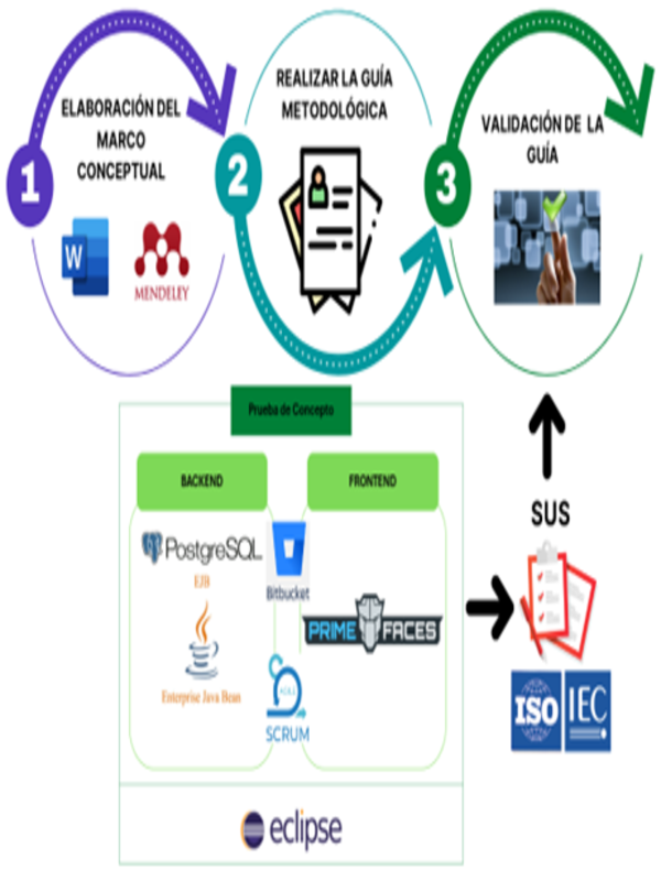 | Abstract: | Este trabajo de titulación se estructura en tres capítulos, en el cual se desarrolla el proceso para realizar el trabajo de integración curricular: “Elaboración de una guía metodológica para la gestión de proyectos de software utilizando Bitbucket y Scrum para apoyar los proyectos de desarrollo”. En la Introducción se presenta el planteamiento del problema, los objetivos generales y específicos, alcance, metodología y justificación. En el Capítulo 1 se presenta el marco conceptual que fundamenta la investigación. En este apartado se abordan los principales referentes teóricos relacionados con la gestión de proyectos de software, las metodologías ágiles con énfasis en Scrum, sus principios, roles, eventos y artefactos, así como los conceptos vinculados a las herramientas de gestión y el uso de Bitbucket como herramienta de colaboración. Este capítulo proporciona la base teórica necesaria para sustentar el desarrollo de la propuesta y garantizar su coherencia académica y técnica. En el Capítulo 2 se describe el diseño de la propuesta metodológica. Se analiza la metodología ágil Scrum sus principios, roles, eventos y artefactos como base para su aplicación en el ámbito académico. A partir de ello, se estructura una guía para la gestión de proyectos que integra Scrum y Bitbucket, incluyendo fases de trabajo, definición de roles, organización de repositorios y buenas prácticas adaptadas al contexto formativo. En el Capítulo 3 se presenta la validación de la guía mediante una prueba de concepto en un entorno académico. Se evalúa su usabilidad con la escala System Usability Scale (SUS) y su funcionalidad con base en una norma ISO de calidad del software. Finalmente, se exponen y analizan los resultados obtenidos. En este documento se incluyen las conclusiones, recomendaciones, referencias bibliográficas y anexos que respaldan el desarrollo de la investigación. |