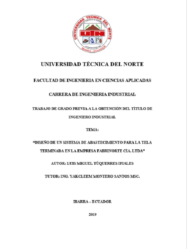 https://repositorio.utn.edu.ec/handle/123456789/9205| Title: | Diseño de un sistema de abastecimiento para la tela terminada en la empresa Fabrinorte CÍA. LTDA |